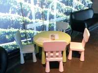 - Un petit salon enfants est présent à l'accueil pour dessiner tranquillement pendant que les parents visitent la boutique ou boivent un café.