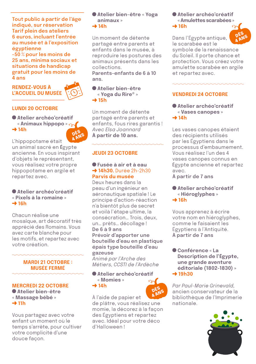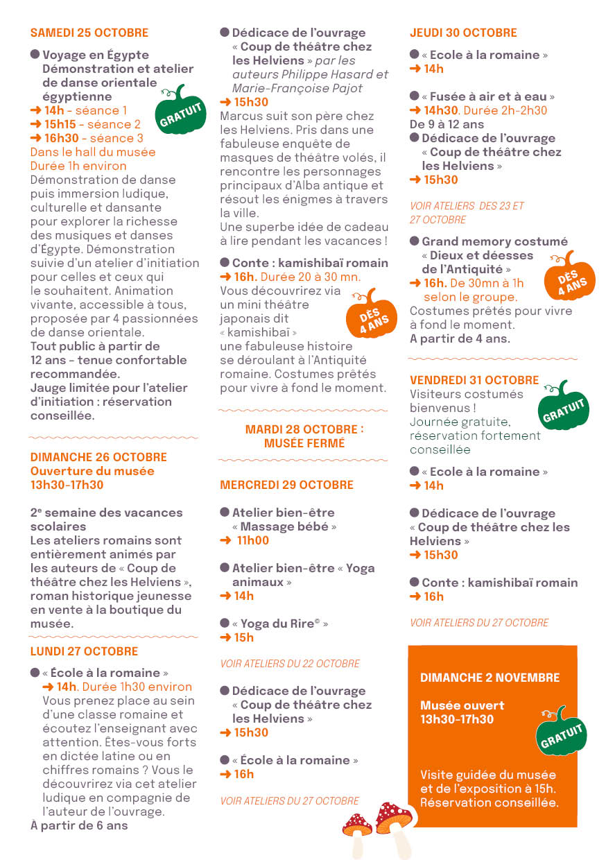 Programme des activités des vacances d'automne du 18 octobre au 2 novembre